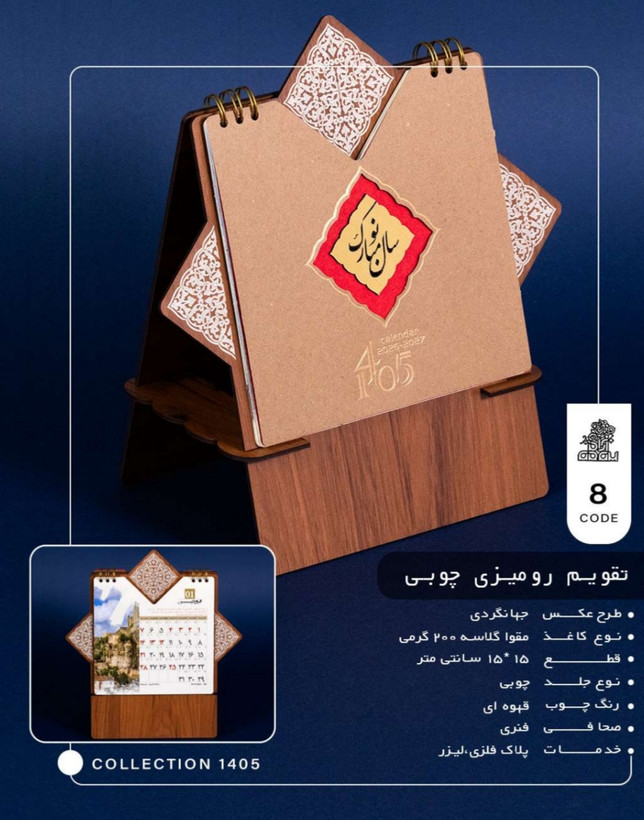 تقویم رومیزی چوبی طرح جهانگردی